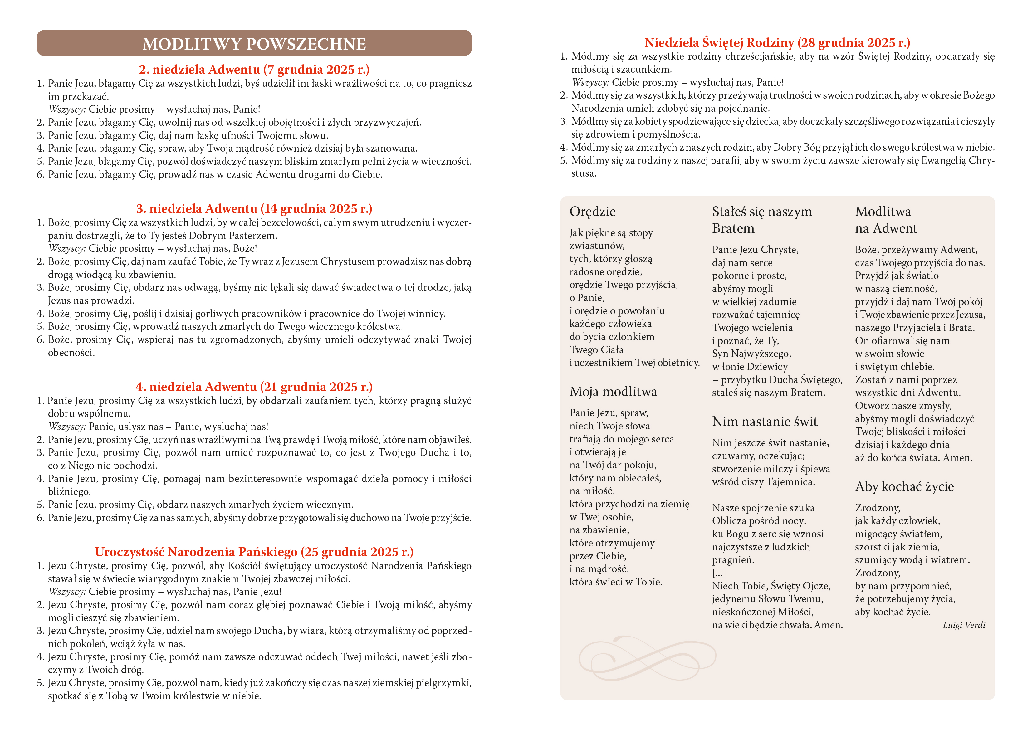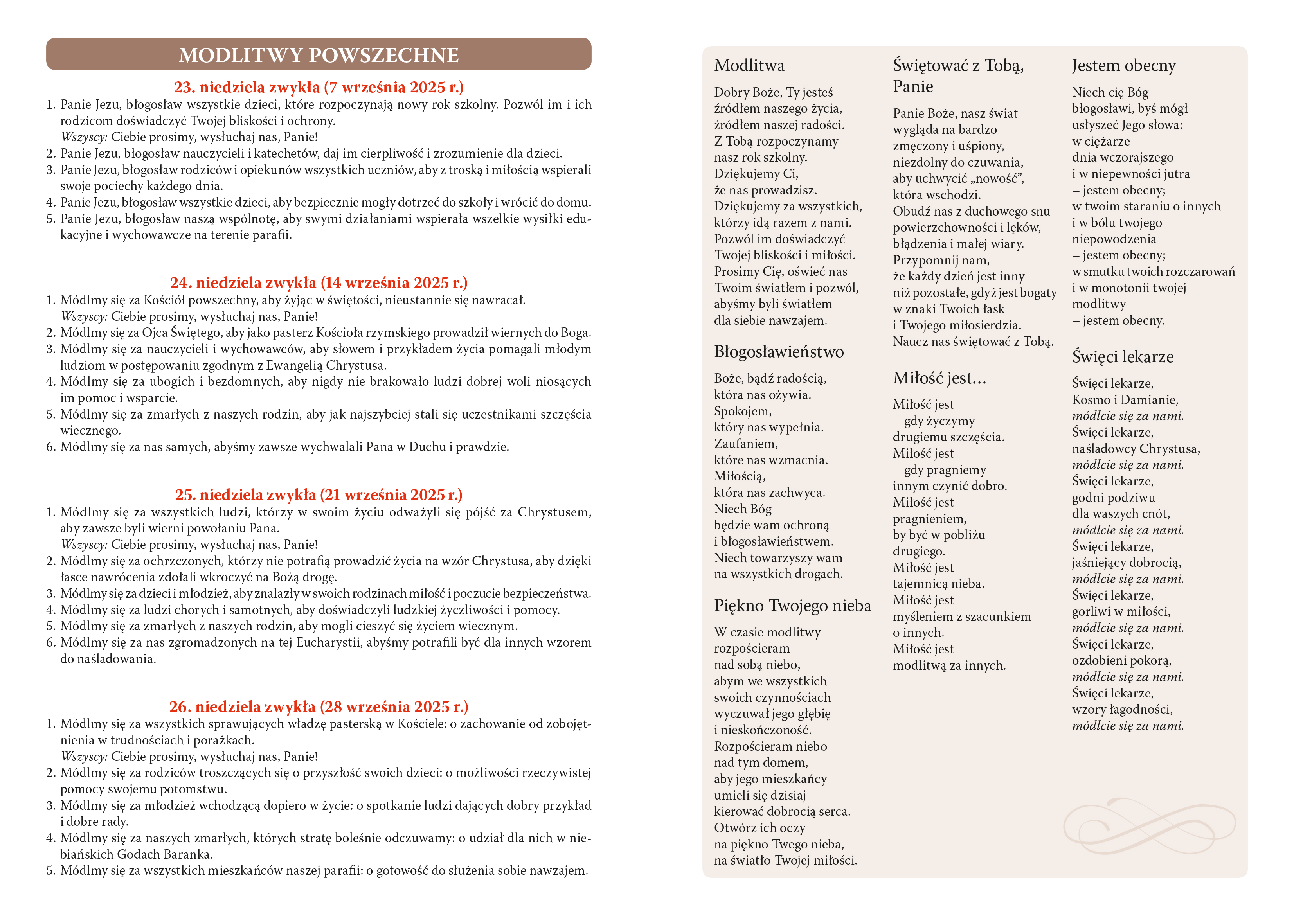 - modlitwy wiernych na niedziele i święta,