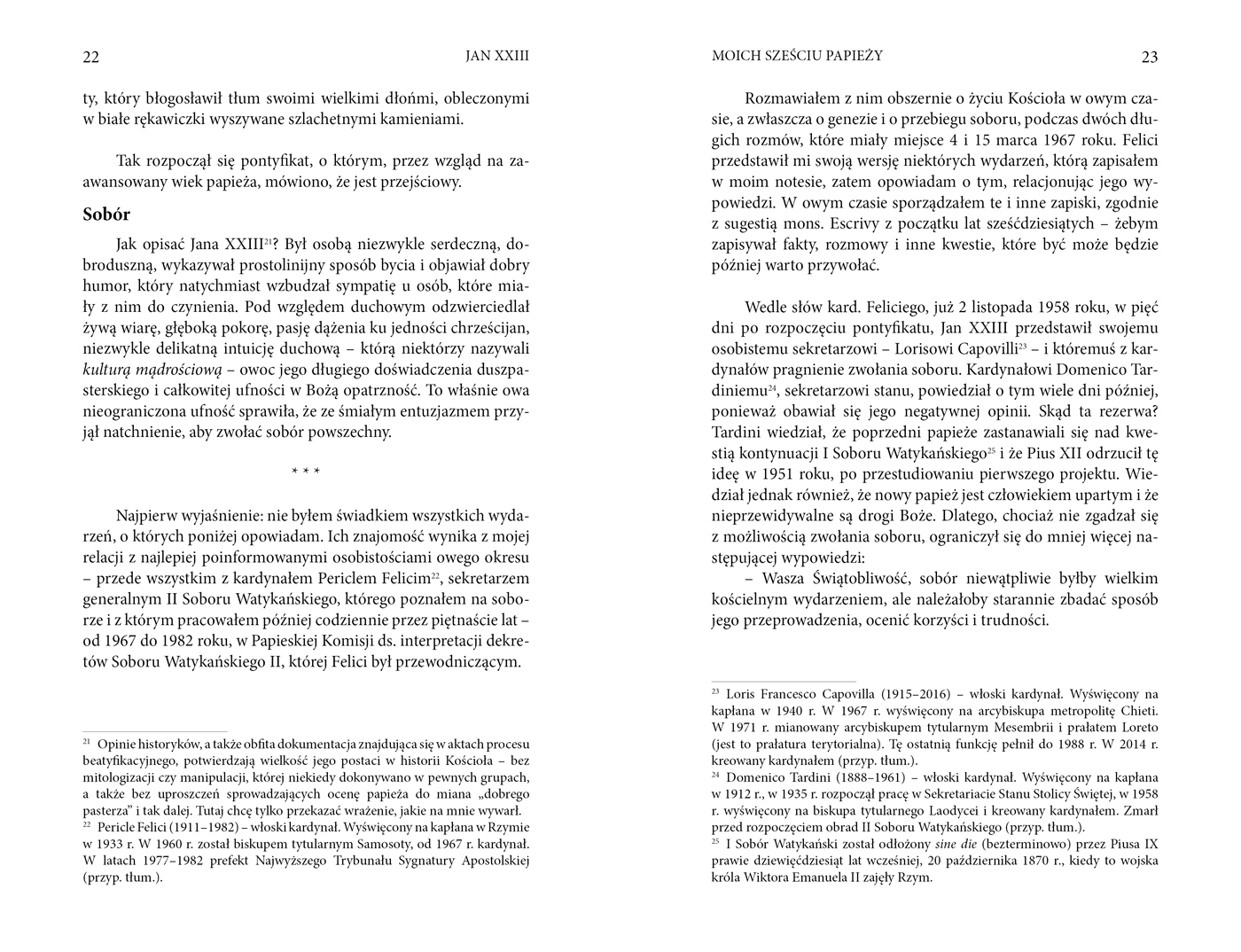 Autor publikacji był jednym z najbliższych współpracowników papieży na przestrzeni kilkudziesięciu lat. Pracę w Kurii Rzymskiej rozpoczął w 1958 roku. W swoich wspomnieniach opisuje liczne zdarzenia, których był uczestnikiem, m.in. przebieg II Soboru Watykańskiego, troskę o katolików w Chinach, „pertraktacje” Stolicy Świętej z lefebrystami, fenomen Medziugoria, sprawę Vatileaks.