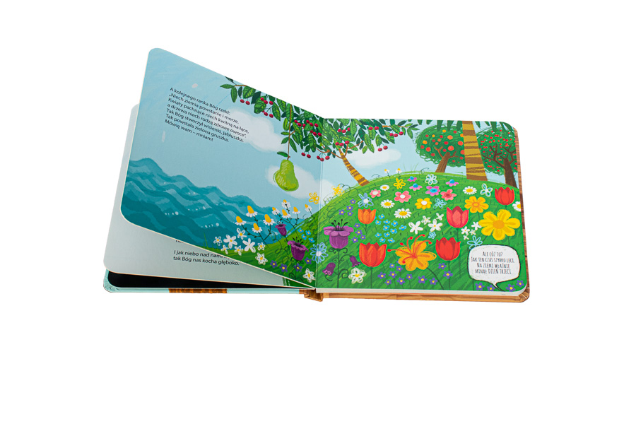 W tej uroczej i pięknej książeczce znajdziemy wierszowaną, pełną ciepła i radości biblijną historię o stworzeniu świata. Wspólne czytanie ją z dziećmi będzie wspaniałą zabawą dla rodziców i maluchów, a także okazją do pierwszych rozmów o Bogu. Wpadające w ucho wersy, tryskające kolorami ilustracje, kartonowe strony i zaokrąglone rogi książeczki zostały przygotowane z myślą o najmłodszych czytelnikach, których serdecznie zapraszamy do odkrywania wielkiej miłości Pana Boga. I to każdego dnia!