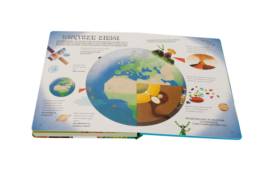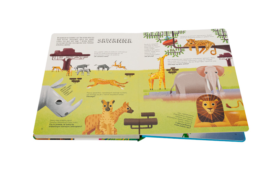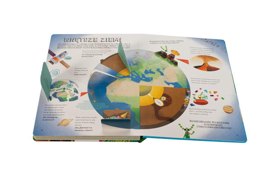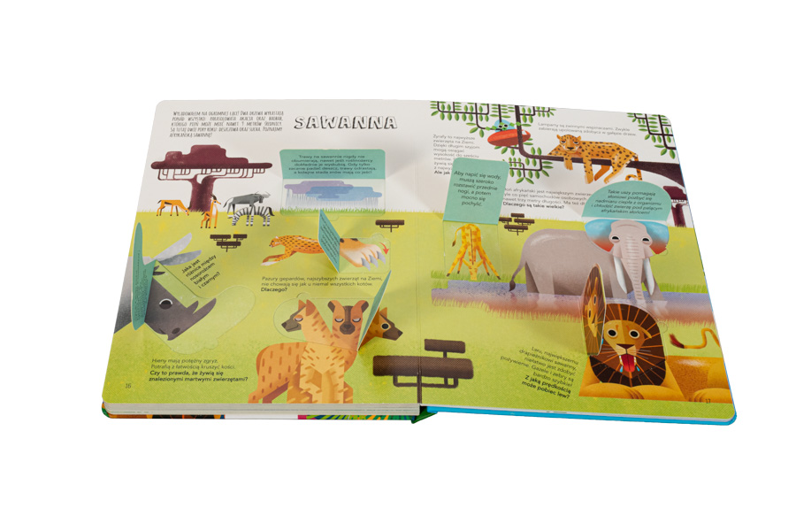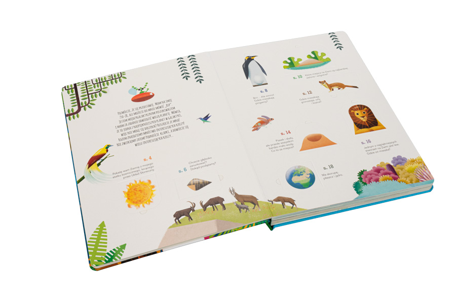 Młodzi czytelnicy znajdą tutaj odpowiedzi na wiele pytań, m.in. Dlaczego Ziemia została nazwana „błękitną planetą”? Jak pingwiny chronią przed zamarznięciem zniesione jaja? Czym są pustynne róże? Po co słoniowi wielkie uszy? Podnosząc klapki, odkryją zaskakujące fakty o zwierzętach i miejscach, w których żyją, a także o wewnętrznej budowie naszej planety.