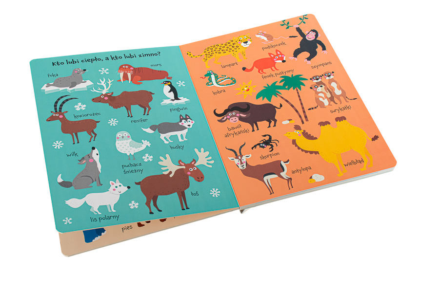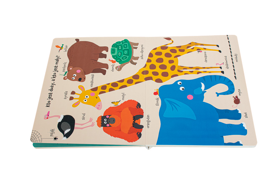 Wyjątkowa książka, która świetnie nadaje się już dla najmłodszych dzieci. Tutaj ogromne żyrafy spotykają maleńkie chrząszcze, zwinne zające – sprytne lisy, a głośne małpy – spokojne wieloryby. Duże ilustracje pełne nasyconych barw sprawią, że mali czytelnicy będą z radością poznawać zwierzęta.
