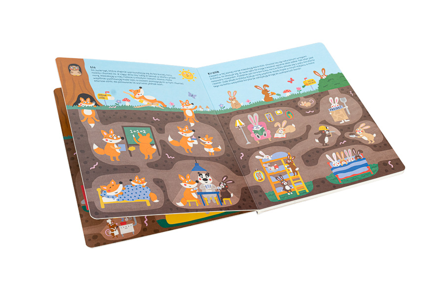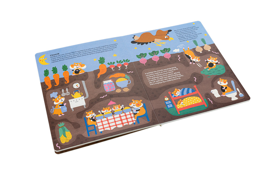 Zwierzaczki z podziemnej paczki to ekscytująca podróż pod ziemię dla najmłodszych czytelników. Zobaczą, ile tam się dzieje! Swoje mieszkania mają tu borsuki, króliki, krety, lisy, bobry, świstaki i chomiki. Żyje tu także mnóstwo robaczków! Dzieci dowiedzą się, jak borsuk buduje swój dom, co je królik i dlaczego bóbr potrzebuje tak dużo drewna.