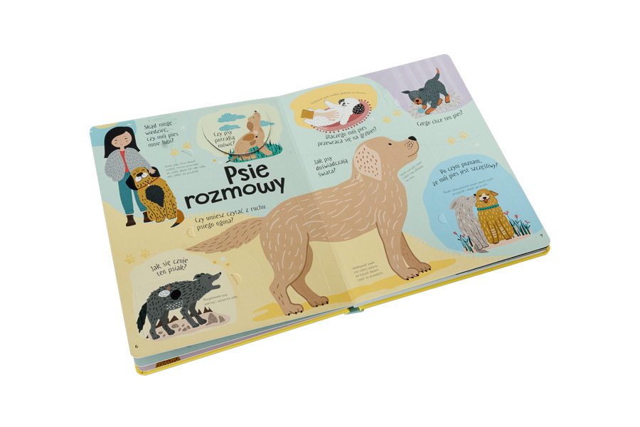 Kocham psy to angażująca, pełna niespodzianek książka, która odpowie na ponad 60 dociekliwych pytań i wprawi w zachwyt miłośników psów. Dowiedzą się oni, jak poznać, że pies jest szczęśliwy, który pies jest najmniejszy i w jaki sposób psy pomagają ludziom. Dzieci będą oglądać, czytać i podnosić klapki! Poznają kilkadziesiąt psów, od mieszańców przez psy gończe po radosne szczeniaki. Nauczą się czytać z ruchu psiego ogona. Dowiedzą się wszystkiego o rasach, zachowaniu psów i opiece nad nimi.
