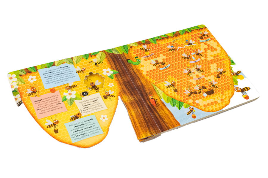 Urocza kartonowa książeczka z pomysłowymi wycięciami zaprasza dzieci do fascynującego świata pszczół. Dzięki jej barwnym i pełnym humoru stronom dzieci poznają wiele słodkich jak miód ciekawostek i poczują się, jakby zaglądały do wnętrza ula. Bzz, bzz! Ale ule! Ale zabawa! Bajecznie kolorowe strony książeczki zaciekawią dzieci otaczającym je światem i pięknem przyrody i zapewnią im rozwijającą i bezpieczną rozrywkę.
