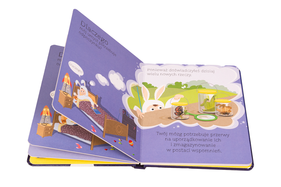 Prosty, bliski dzieciom tekst i pełne humoru ilustracje wyjaśniają, dlaczego nasze ciało i umysł potrzebują odpoczynku. Książka informuje najmłodszych, co się dzieje, kiedy śpimy za mało, a także skąd się biorą i ile trwają sny.