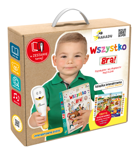 Wszystko gra! Poznajemy instrumenty muzyczne to interaktywna książka z piórem Kakadu, które uruchamia zakodowane na stronach teksty i dźwięki. Publikacja jest częścią innowacyjnego systemu nauki i zabawy w jednym.