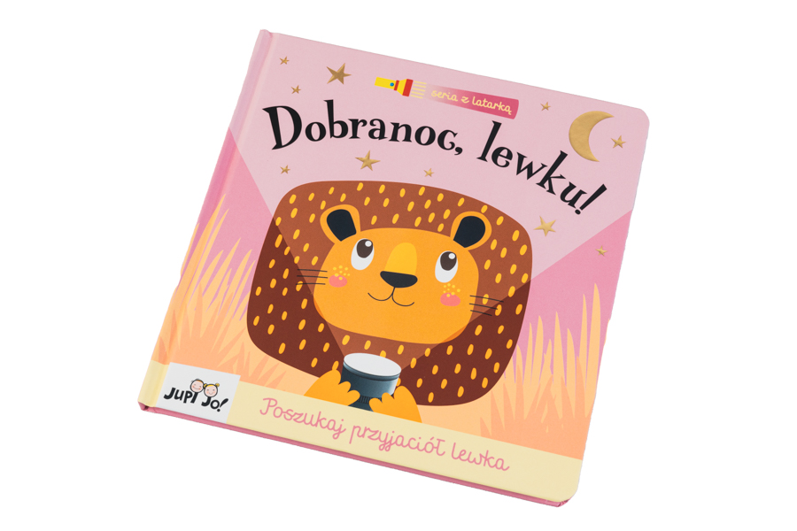 Lew chce iść spać, ale zanim to zrobi, ma pewne zadanie: musi powiedzieć innym zwierzętom, że nadchodzi pora snu. Pomożesz mu je znaleźć? Wyjmij znajdującą się w książce kartonową latarkę, weź ją do ręki, wsuń pod ciemną folię i rzuć światło na bohaterów książeczki. Słuchając rymowanej opowiastki, szukaj z lewkiem zebry, hipopotama i innych zwierzaków.