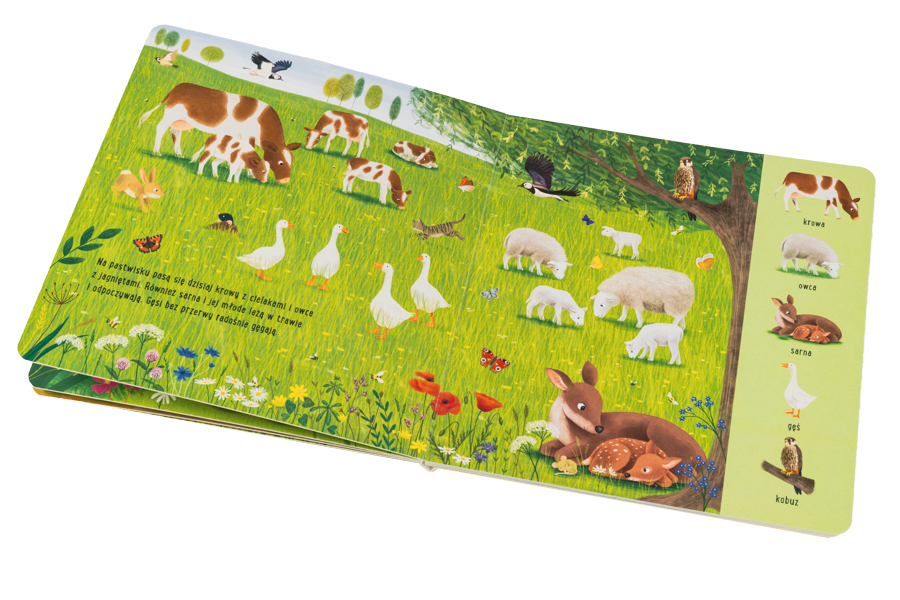 Och, jaki cudny spacer po łące! Co tam brzęczy i pachnie? Ciekawe, dokąd prowadzi ten ślad mrówek? Co to za zwierzęta skubią trawę na pastwisku? Dzięki tej kolorowej książce mali przyrodnicy będą obserwować zwierzęta, takie jak króliki, boćki czy owieczki bawiące się na kwietnej łące. Każda strona publikacji to nowa scena do podziwiania, a na końcu na naszych milusińskich czeka niespodzianka – ciekawe, czy uda im się zgadnąć, jakie zwierzę spałaszuje dany przysmak. Seria „Poznaję Przyrodę” to pierwsze spotkanie z naturą dla dzieci od lat 3. Realistyczne i ciepłe ilustracje oraz prosty tekst zaspokoją ciekawość małych czytelników i nauczą ich zachwytu nad światem.