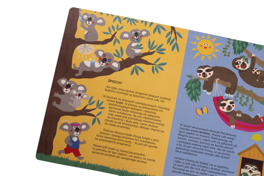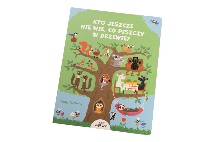 Ta książka to wspaniała wędrówka w koronach drzew dla najmłodszych czytelników. Tam wysoko panuje wielkie zamieszanie! Swoje mieszkanie mają dzięcioły, pszczoły, sowy i popielice. Gdzie indziej na gałęziach drzemią leniwce, skaczą małpy, a kozy przeżuwają ulubione smakołyki. Dzieci dowiedzą się, co wiewiórka robi przez cały rok, dlaczego koala chętnie przytula się do swojego ulubionego eukaliptusa i dlaczego lwy siedzą czasem na drzewach. Kto jeszcze nie wie, co piszczy w drzewie? to wesołe historyjki obrazkowe z pełnymi humoru ilustracjami i tekstem dostosowanym do najmłodszych, które przekazują pierwszą wiedzę o zwierzętach w formie zabawy.