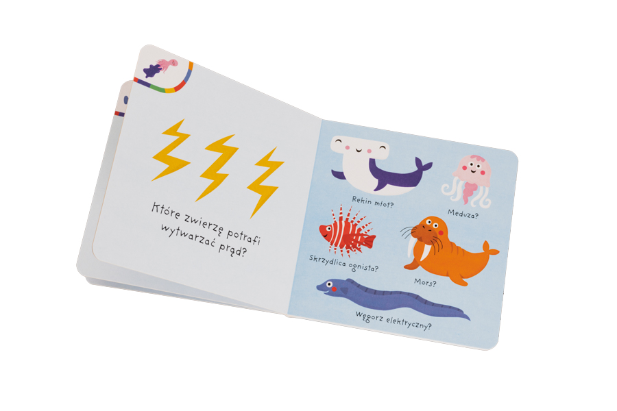Które zwierzę potrafi wytwarzać prąd, a które kryje w sobie perłę? W tej kartonowej książeczce ciekawe świata maluchy poznają pierwsze fakty o mieszkańcach morza.