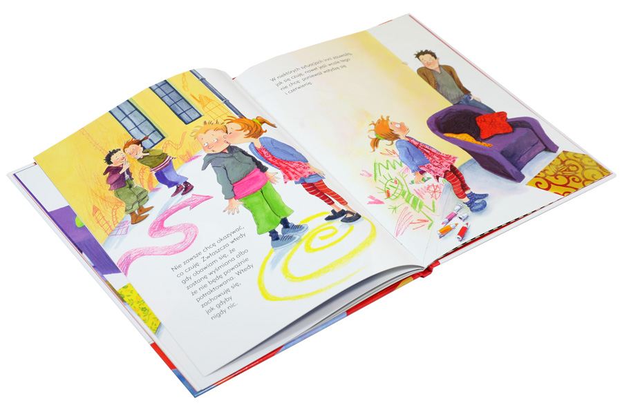 Poznanie własnych uczuć i radzenie sobie z nimi to wielka sztuka, której uczymy się przez całe życie, ale zacząć powinniśmy już w dzieciństwie. Nie ma dobrych i złych emocji, ale mały człowiek musi wiedzieć, że nie w każdej sytuacji może skakać z radości i śmiać się do rozpuku, podobnie jak nie może pozwolić sobie na niegrzeczne zachowanie czy brzydkie słowa, tylko dlatego że akurat ma zły nastrój. Ta książka pomaga dzieciom nazwać ich uczucia i kontrolować je w sposób adekwatny do miejsca i czasu. Na jej kartach opowiadają o swoich emocjach sympatyczne przedszkolaki, zupełnie takie jak nasze pociechy…