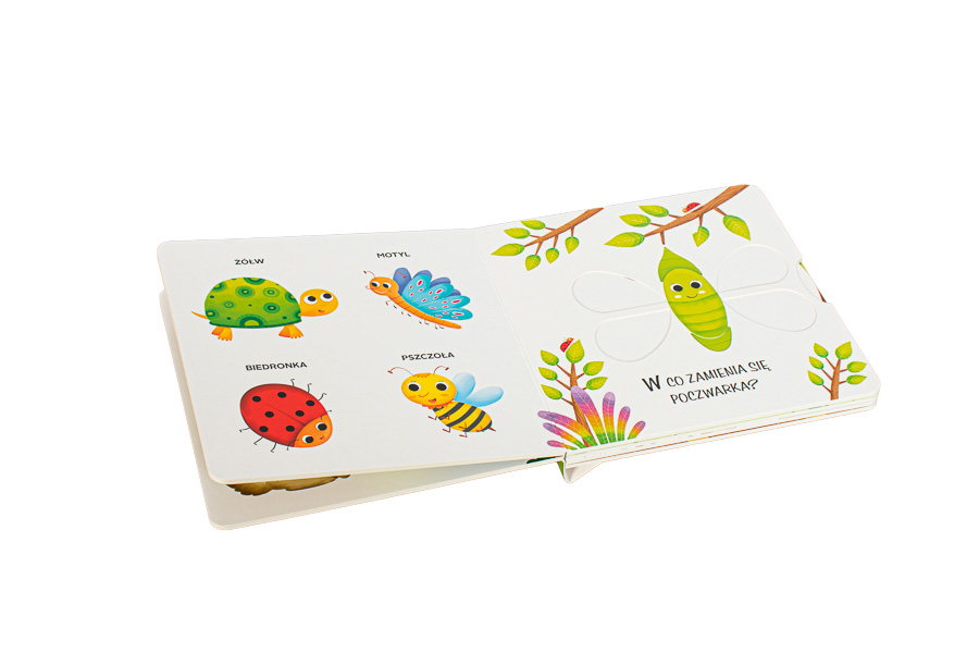 Książeczka ma zaokrąglone rogi, więc jest bezpieczna dla dzieci. Zachęcamy jednak dorosłych, by wspólnie z najmłodszymi czytelnikami poznawali niespodzianki ukryte w środku. Moc atrakcji, jakie oferuje ta książka, sprawi, że maluchy będą chętnie odkrywać ją na nowo.