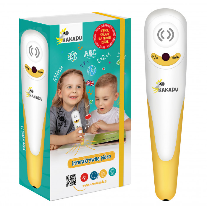 To część innowacyjnego systemu nauki i zabawy w jednym. Dzięki niemu spotkanie z książką staje się prawdziwą przygodą. Teksty, odgłosy otoczenia, piosenki i zagadki w nowatorski sposób rozwijają zmysły, pobudzają wyobraźnię, pomagają poznawać świat i języki obce. Pióro KAKADU wspiera proces nauki i kreatywność dziecka. To bardzo proste w obsłudze urządzenie zadziwia szerokim zakresem funkcji.