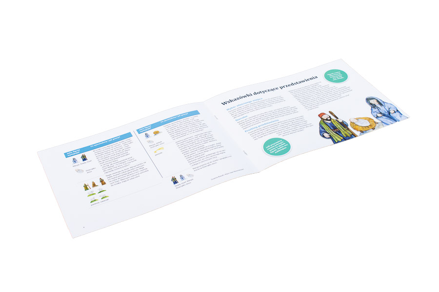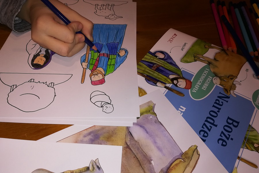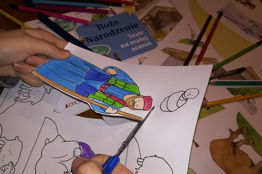 Przygotuj scenariusz opowieści, który znajdziesz w publikacji. A jest to biblijna historia o narodzinach Jezusa.