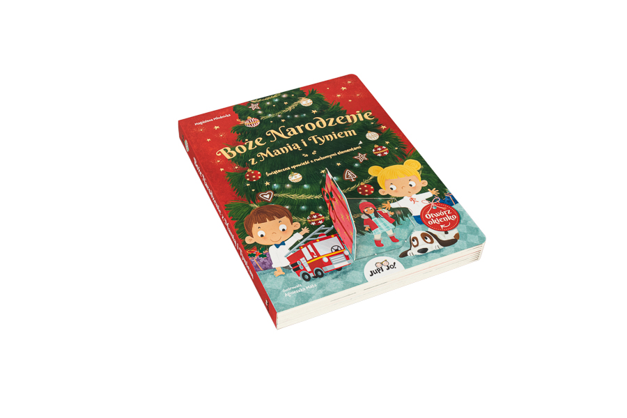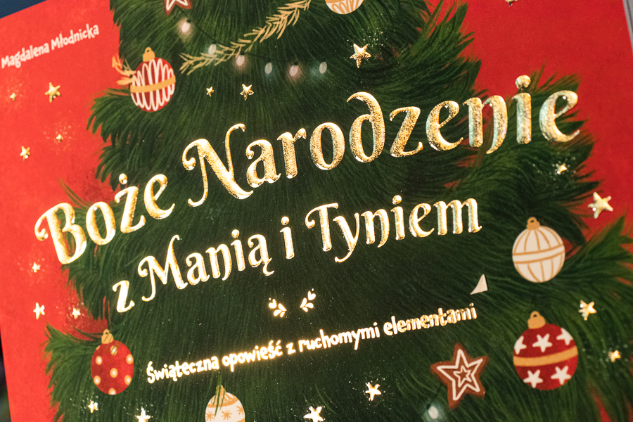 Świąteczna opowieść z dużą dawką humoru i rodzinnego ciepła. Jej bohaterami są Mania i Tynio oraz ich najbliżsi. Młodzi czytelnicy zajrzą do pudła z ozdobami choinkowymi, zobaczą , jakie produkty do przygotowania świątecznych potraw czekają w spiżarni, powitają niespodziewanego gościa, sprawdzą, co po choinką zostawił Mikołaj. Książka nie tylko wprowadza w świąteczny klimat i mówi o bożonarodzeniowych zwyczajach, ale także odpowiada na pytanie, czym są święta Bożego Narodzenia. Umieszczone na każdej stronie okienka oraz ruchome elementy budzą ciekawość młodego czytelnika, rozwijają wyobraźnię i dostarczają mnóstwo zabawy.