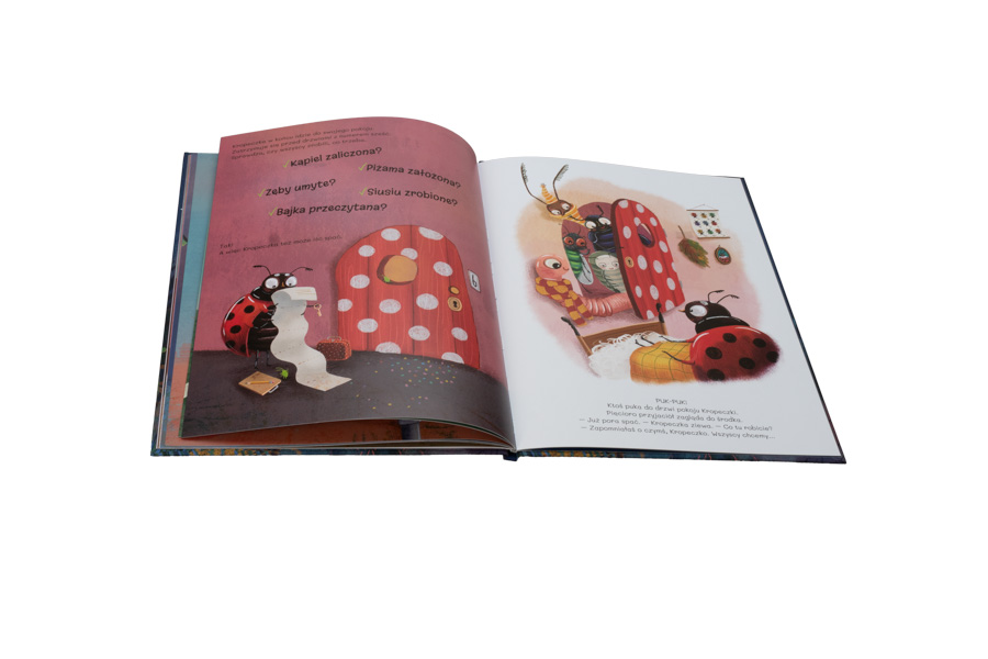 Oto przed Państwem biedronka Kropeczka, tajna kontrolerka snu. Właśnie przybyła do przytulnego hotelu dla owadów, by sprawdzić, czy wszyscy we właściwy sposób szykują się na nocny odpoczynek: czy umyli zęby, zrobili siusiu, czy przeczytali bajkę na dobranoc… Ciekawe, jaki wynik da wieczorna inspekcja Kropeczki…