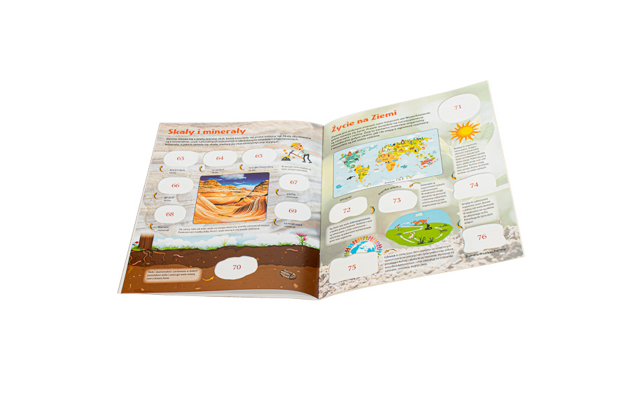 Ta książeczka z naklejkami zaprasza dzieci w fascynującą podróż po naszej planecie, podczas której poznają one atmosferę, kształt i budowę kuli ziemskiej, przyjrzą się procesowi powstawania lądów, gór i mórz, a przy okazji będą świetnie się bawić, umieszczając kolorowe naklejki w specjalnie zaprojektowanych polach.