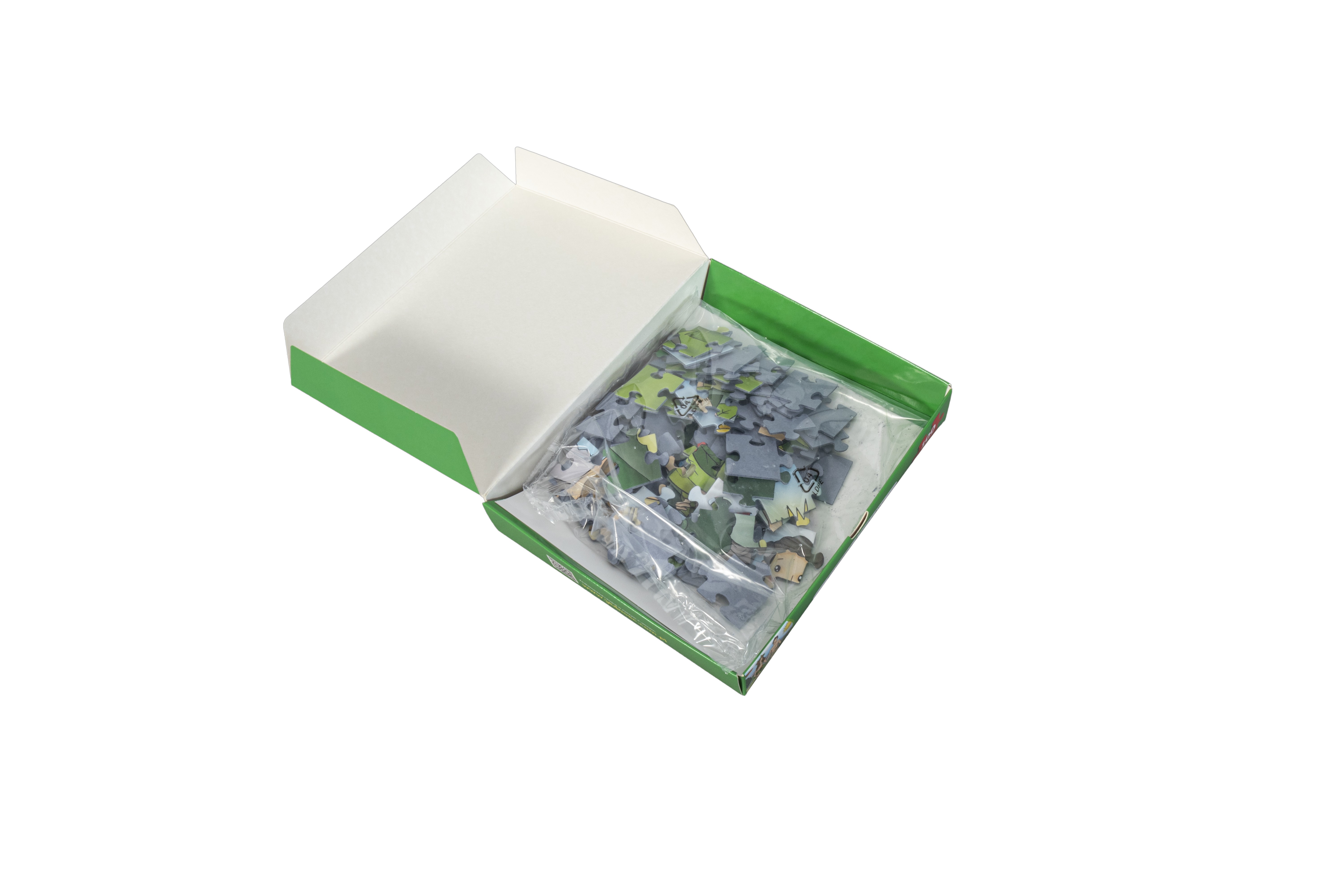 Puzzle składają się ze 100 elementów i spakowane są w praktyczne pudełko. Po ułożeniu powstanie duży, kolorowy obrazek o wymiarach 41 x 27,5 cm