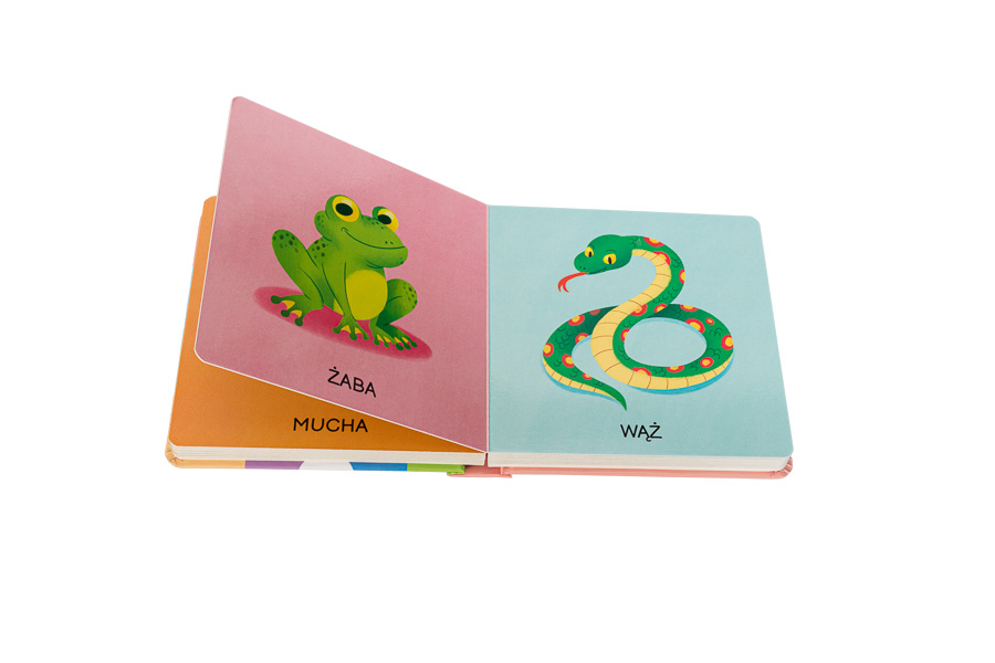 Książka zawiera 50 nazw zwierząt, a każdej z nich odpowiada urocza ilustracja. Najmłodsi będą patrzeć na obrazki, nauczą się rozpoznawać zwierzęta i wypowiadać ich nazwy. Jest tyle do odkrycia!