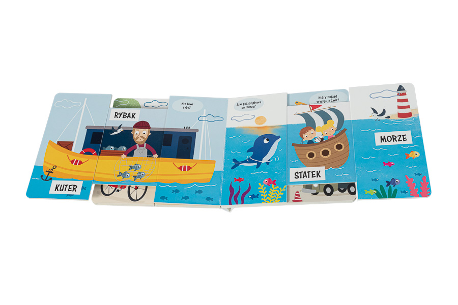 Rozsuwając strony książeczki i obserwując jej bohaterów, najmłodsi będą poznawać nazwy pojazdów i rozwijać mowę.