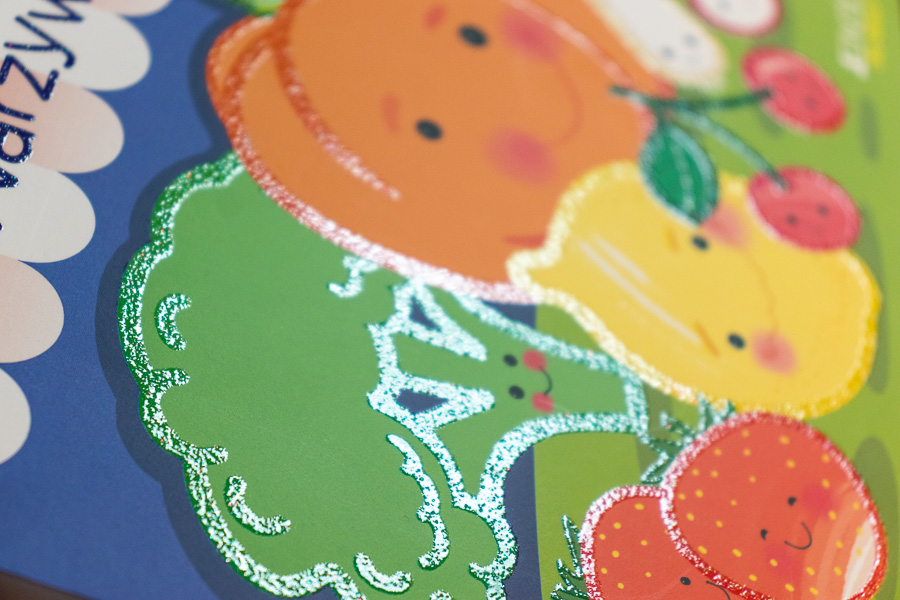 W tej wspaniałej kolorowance przygotowanej specjalnie z myślą o maluchach ukryły się smakowite warzywa i owoce. Dodatkową niespodzianką jest to, że każda zamieszczona w niej rzecz posiada błyszczący, brokatowy kontur, który pomoże nie wychodzić za linię obrazka. To sprawi, że rysunki małych artystów staną się naprawdę wyjątkowe. Kolorowanki to nie tylko świetna zabawa dla malucha, lecz także doskonałe ćwiczenie jego ręki, przygotowujące do nauki pisania.
