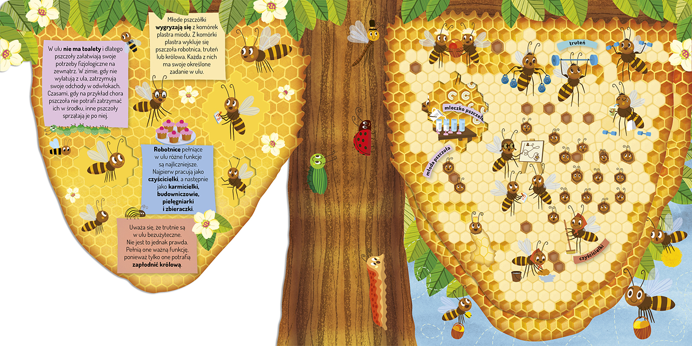 Urocza kartonowa książeczka z pomysłowymi wycięciami zaprasza dzieci do fascynującego świata pszczół. Dzięki jej barwnym i pełnym humoru stronom dzieci poznają wiele słodkich jak miód ciekawostek i poczują się, jakby zaglądały do wnętrza ula. Bzz, bzz! Ale ule! Ale zabawa! Bajecznie kolorowe strony książeczki zaciekawią dzieci otaczającym je światem i pięknem przyrody i zapewnią im rozwijającą i bezpieczną rozrywkę.