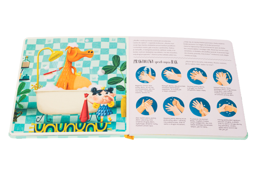 Pewien smok prowadził bardzo niezdrowy tryb życia, zbyt często jadł słodycze, nie czyścił zębów, nie mył łap przed posiłkami, nie lubił się ruszać i wolał całymi dniami przebywać w swoim pokoju, zamiast robić fikołki na podwórku. W dodatku miał bałagan w szkolnym plecaku i wciąż chodził niewyspany. „Ach, katastrofa. Kto pomoże nieborakowi?”. Na szczęście sytuację uratowała mała rezolutna księżniczka, która cierpliwie i krok po kroku wytłumaczyła smokowi, co powinien zrobić, żeby wróciła mu energia do życia, by jego zęby i łapy były czyste, a przedmioty wokół niego uporządkowane. Jeśli chcecie dołączyć do smoka i księżniczki i nauczyć się, w jaki sposób dbać o swoje zdrowie i higienę ciała, koniecznie zajrzyjcie do tej kolorowej, pełnej humoru książki.