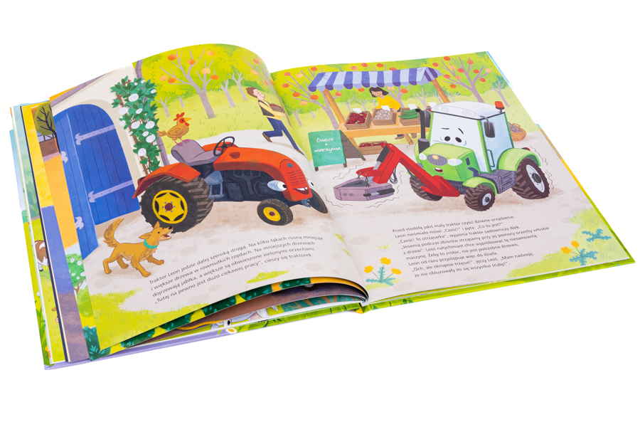Mały traktorek żyje na wsi. Mieszka z miłą rodziną rolników. Rodzice, dzieci i babcia zajmują się uprawą roślin i hodowlą zwierząt. Z wielką troską dbają też o swoje maszyny rolnicze. Traktorek Leoś pomaga im dzielnie w wielu pracach na farmie: rozrzuca obornik, orze i przewozi ciężkie przedmioty… Pewnego dnia stwierdza jednak z żalem, że jego życie jest nudne, i postanawia wyruszyć w świat w poszukiwaniu przygód. Próbuje wykonywać prace, do których są przeznaczone inne pojazdy, ale nowe obowiązki go przerastają. Poza tym jego silnik zaczyna tęsknić za domem…