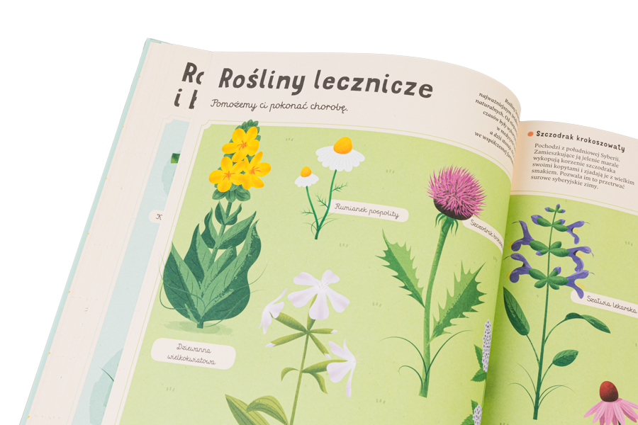 Ta unikatowa książka przedstawia królestwo roślin i grzybów, a czyni to w iście mistrzowski sposób! 48 wielkoformatowych stron z przykuwającymi uwagę ilustracjami i mnóstwem frapującej wiedzy porwie naszych małych czytelników do fascynującego świata botaniki i mykologii i sprawi, że będą chcieli pozostać w nim na dłużej…