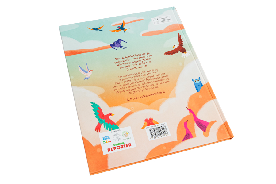 Ta kolorowa jak pióra książka, poprzez barwny tekst i zachwycające ilustracje, odsłania przed nami sekretne życie ptaków.