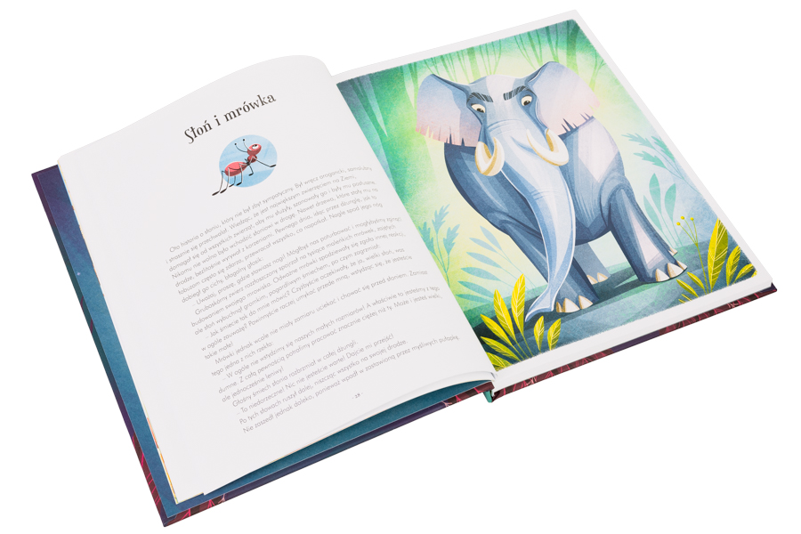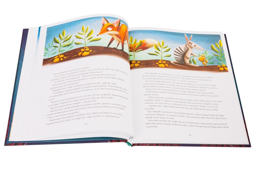 Ta przepiękna książka z ilustracjami Anny Láng zawiera bajki, których bohaterami są małe i duże zwierzęta. Są tu więc sprytne lisy, tchórzliwe zające, podstępne koty, naiwne owce, ciekawskie myszy, dumne lwy i wiele innych postaci. Ich niezwykłe przygody, doświadczenia i pomysły wywołają uśmiech na twarzach dzieci, ale też mogą skłonić do pomyślenia, jakie przesłanie ma usłyszana opowieść.