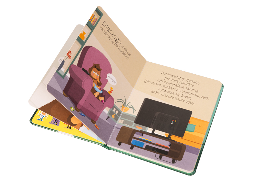 Prosty, bliski dzieciom tekst i pełne humoru ilustracje wyjaśniają, skąd się biorą złe bakterie i w jaki sposób szkodzą one naszym zębom. Najmłodsi czytelnicy dowiedzą się też, co zrobić, aby pozbyć się szkodliwych drobnoustrojów. Książka zawiera wiele ciekawostek o zębach ludzi i zwierząt i zachęca do dbania o piękny uśmiech.