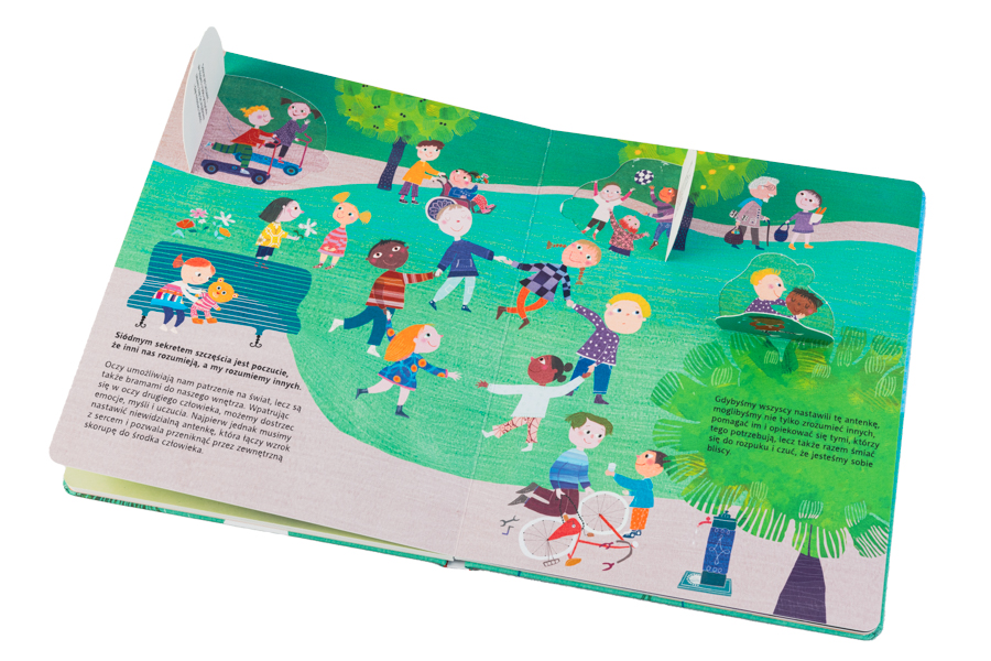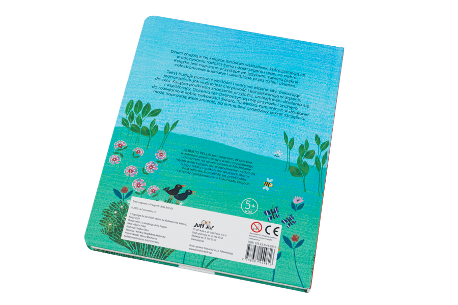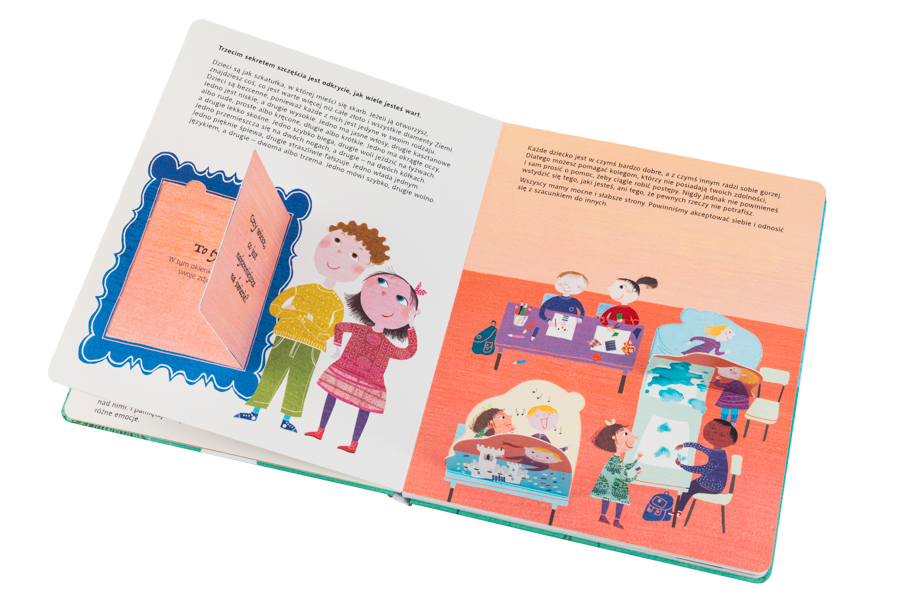 Dzieci znajdą w tej książce mnóstwo wskazówek, które pomogą im w odczuwaniu radości życia i dostrzeganiu tego, co dobre. Książka jest napisana przystępnym językiem, zawiera piękne całostronicowe ilustracje i uwielbiane przez dzieci okienka. Tekst buduje poczucie wartości i wiary we własne we własne siły, pokazując jednocześnie, jak ważna jest cierpliwość i konsekwencja w dążeniu do celu. Książka podkreśla znaczenie przyjaźni, umiejętności dzielenia się i współpracy. Docenia tez dobroczynną rolę przyrody i zachęca do rozwijania w sobie ciekawości świata. Ta wiedza zamieniona w działanie może naprawdę wiele zmienić, bo w niej tkwi prawdziwy sekret szczęścia.