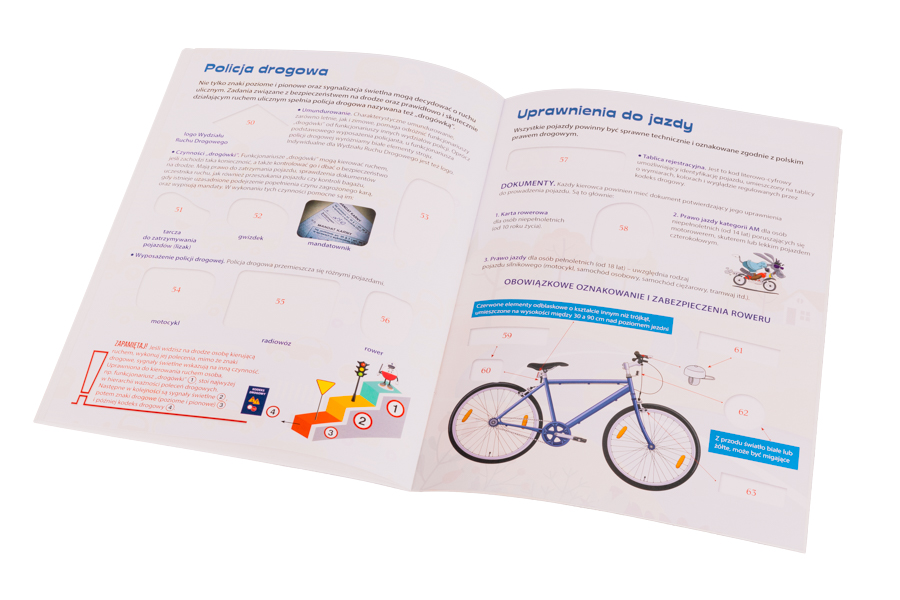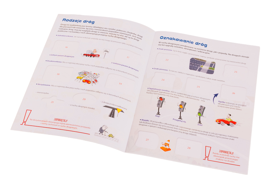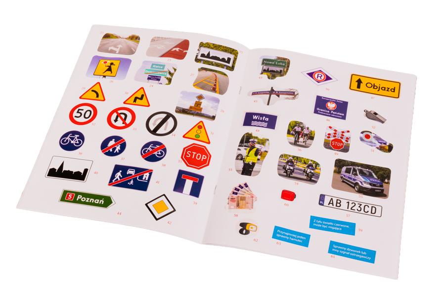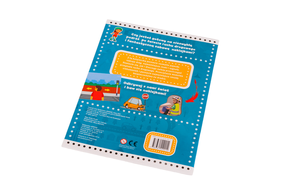 Ta książeczka z naklejkami zaprasza dzieci w fascynującą podróż, podczas której dowiedzą się, jak wiele jest rozmaitych pojazdów i rodzajów dróg, dlaczego trzeba przestrzegać przepisów ruchu drogowego; poznają najważniejsze znaki, sygnały i zasady bezpieczeństwa, a przy okazji będą świetnie się bawić, umieszczając kolorowe naklejki w specjalnie zaprojektowanych polach.