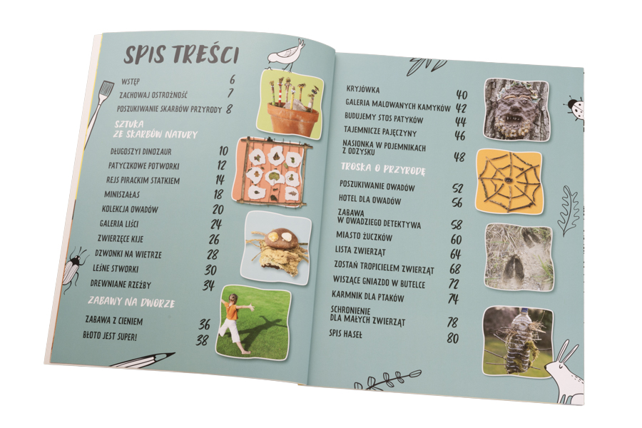 Tę książkę kierujemy do młodych odbiorców, którzy kochają przyrodę (i do tych, którzy jeszcze jej nie doceniają) i są fanami zajęć plastycznych. Zawarte w niej pomysły pozwolą dzieciom połączyć pasję kreacji z poszerzaniem wiedzy przyrodniczej oraz fascynującymi obserwacjami roślin i zwierząt.