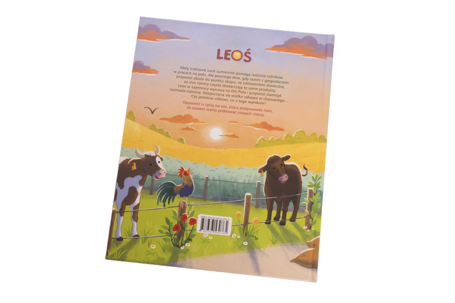 Traktor Leoś żyje na wsi. Codziennie pomaga rodzinie pracowitych rolników w uprawie roślin i hodowli zwierząt. Dzielnie rozrzuca obornik, orze pole, transportuje ciężkie przedmioty…