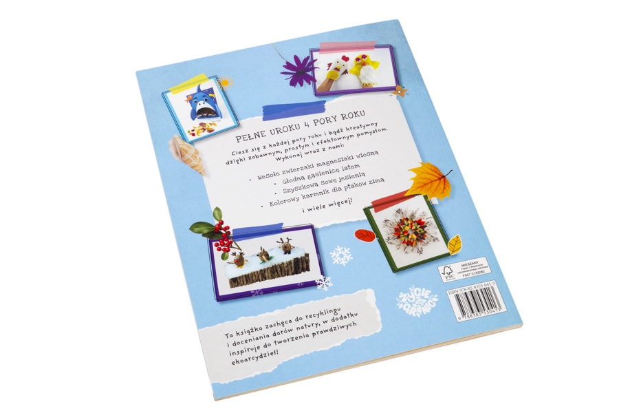 Ta książka łączy w sobie ekologię, recykling, kreatywność i świetną zabawę! Zaprasza nas do tworzenia oryginalnych arcydziełek przez cały rok: zieloną wiosną, słonecznym latem, kolorową jesienią i białą zimą!