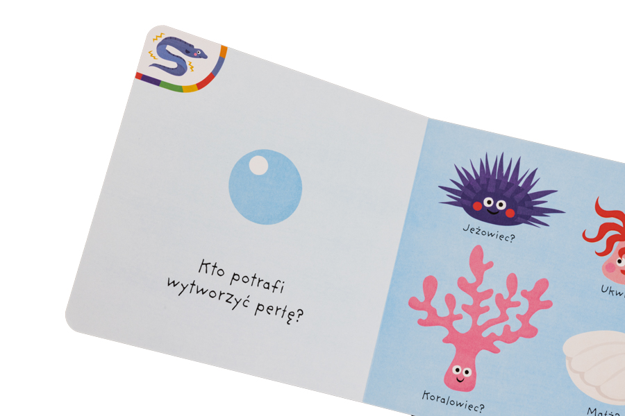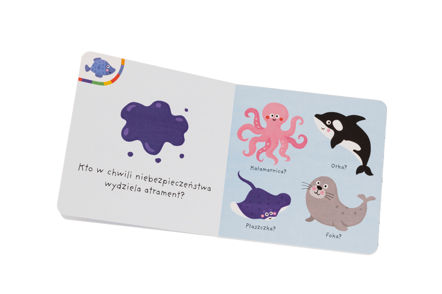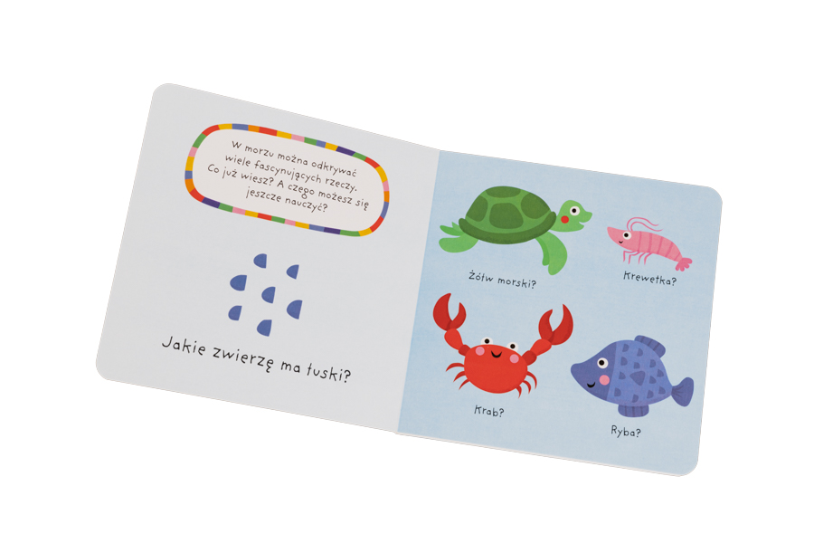Które zwierzę potrafi wytwarzać prąd, a które kryje w sobie perłę? W tej kartonowej książeczce ciekawe świata maluchy poznają pierwsze fakty o mieszkańcach morza.