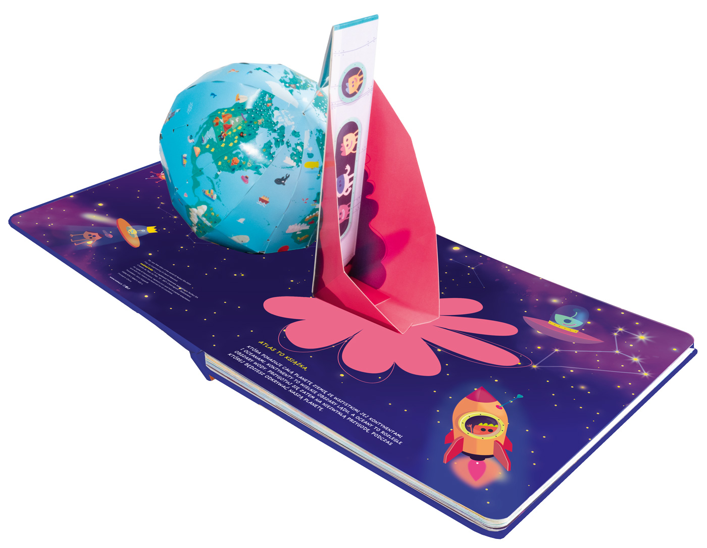 To jedyny w swoim rodzaju atlas z trójwymiarowym, obracającym się globusem, który zobaczysz, jak tylko otworzysz tę książkę!