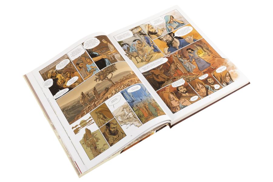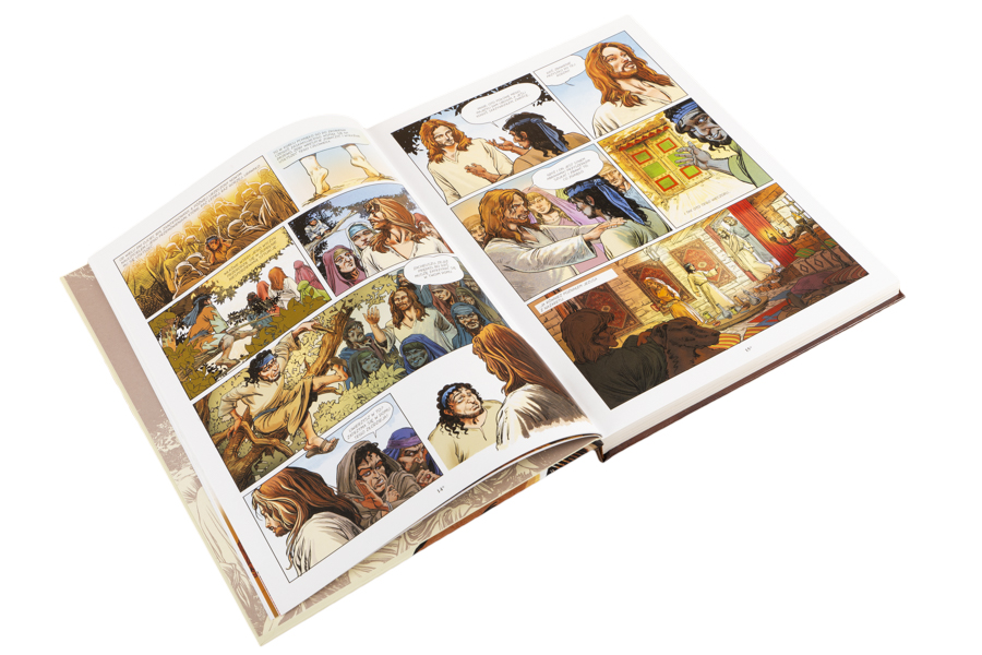 Dzięki czteroletniej pracy Oliviera Driona, ilustratora i autora tego komiksu, możemy zobaczyć to, co wiele oczu chciało widzieć, i usłyszeć to, czego wiele uszu chciało słuchać… Oto wizjonerski sposób na przedstawienie Ewangelii, przybliżający jej przełomowe momenty: od narodzin Jezusa, poprzez Jego dzieciństwo i głoszenie słowa, aż po mękę i chwalebne zmartwychwstanie. Dynamiczne ilustracje Driona odtwarzają postaci w najdrobniejszych szczegółach, mistrzowsko pokazując grę spojrzeń między Jezusem i Jego rozmówcami.