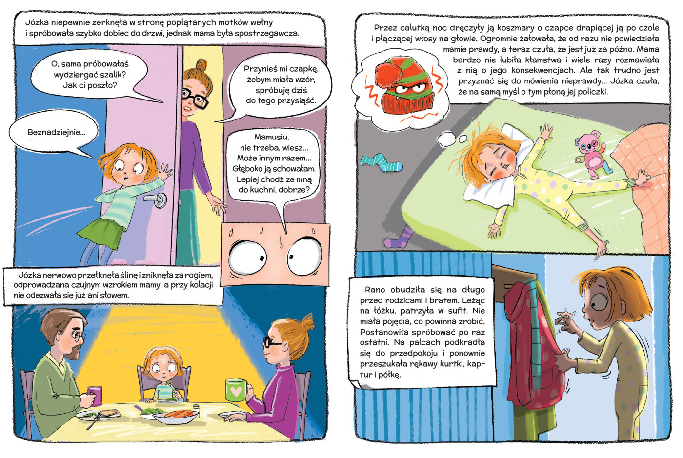 Gdyby Józka nie skłamała… nie byłoby tej świetnie napisanej i pełnej lekkiego humoru opowieści o kłamstwie. Dzięki niej młodsi i starsi czytelnicy przekonają się o niezbyt przyjemnych konsekwencjach ukrywania prawdy. To historia nieco roztargnionej Józki, której niewielkie kłamstewko rośnie niczym śniegowa kula i coraz bardziej komplikuje sytuację. Jak skończy się historia zaginionej czapki, która była przyczyną całego zamieszania? A może było nią coś innego?