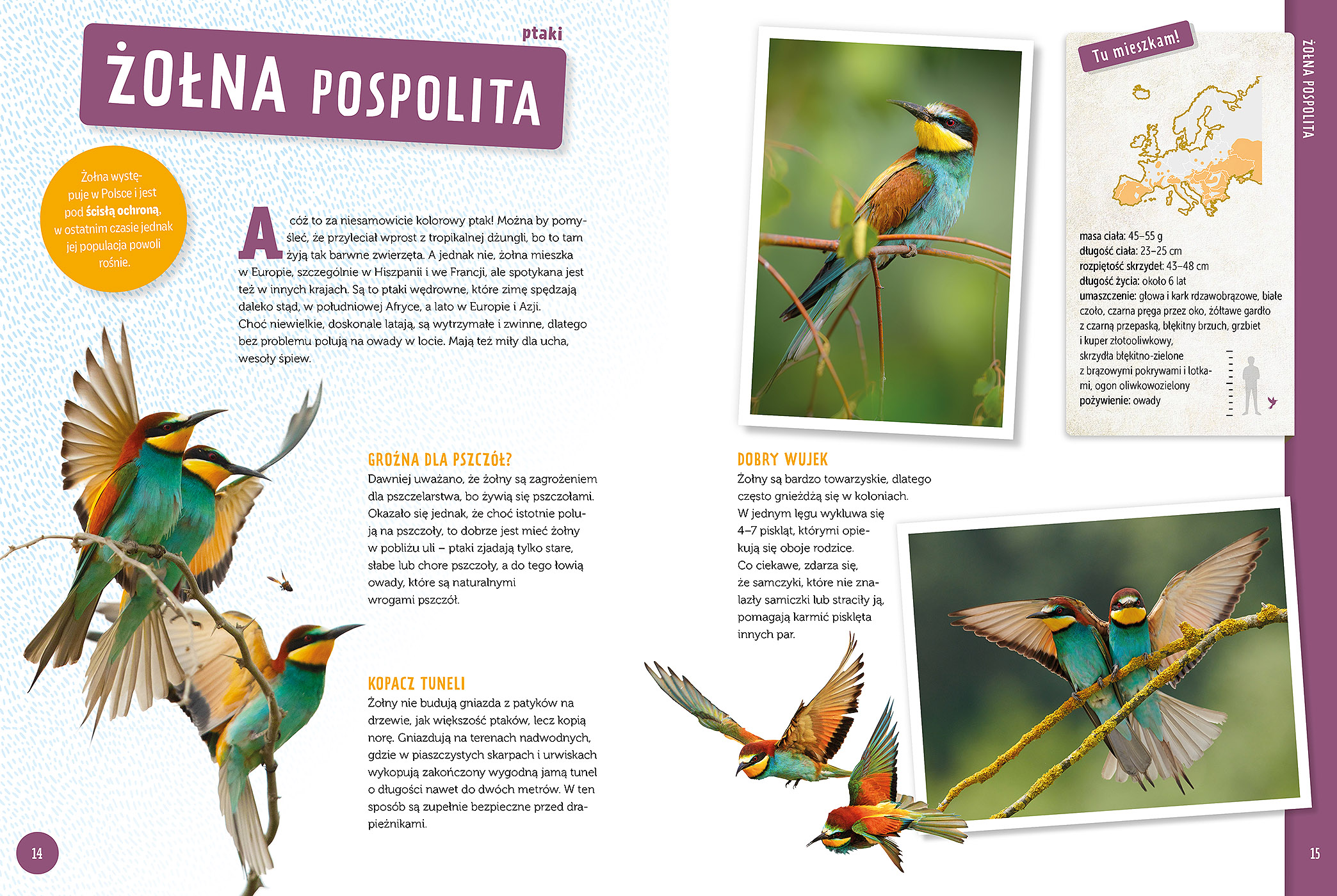 Jeśli chcecie poznać jeszcze więcej ciekawostek o zwierzętach bytujących w Europie, przeczytać o ich zwyczajach i sprawdzić, czy są pod ochroną, koniecznie sięgnijcie po tę fantastyczną książkę. Dzięki jej kolorowym stronom odkryjecie tajemnice aż 15 gatunków, które można spotkać w europejskich lasach, łąkach i rzekach.