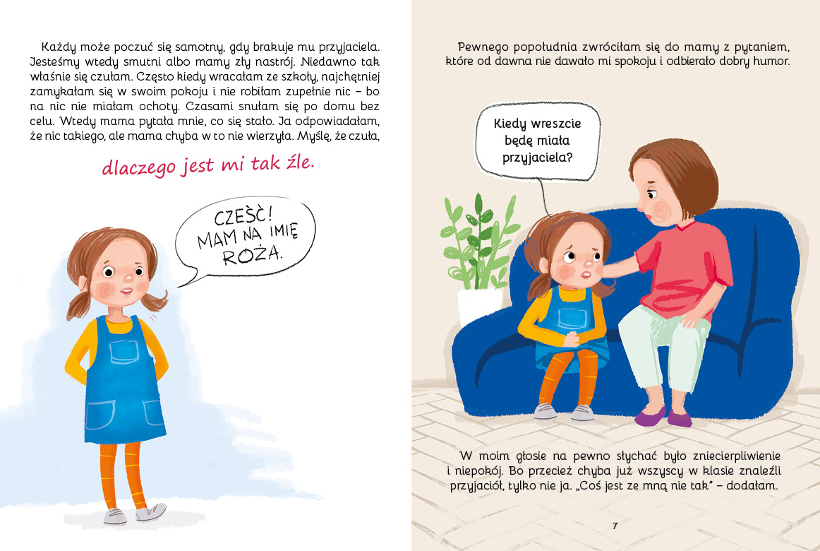 Każdy może poczuć się samotny, gdy brakuje mu przyjaciela. Tak jak Róża, która przekonała się jednak, że warto cierpliwie poczekać na prawdziwą przyjaźń. Ale po czym poznać dobrego przyjaciela? I co gdy to czekanie trwa długo i odbiera nam dobry nastrój? Ta książka w przystępny i niezwykle trafny sposób dotyka tematu przyjaźni. Opisuje typowe sytuacje z życia dzieci i podsuwa mnóstwo praktycznych porad. Wszystko po to, by pomóc dzieciom odnaleźć się wśród rówieśników, zaprzyjaźnić i być dobrym przyjacielem.