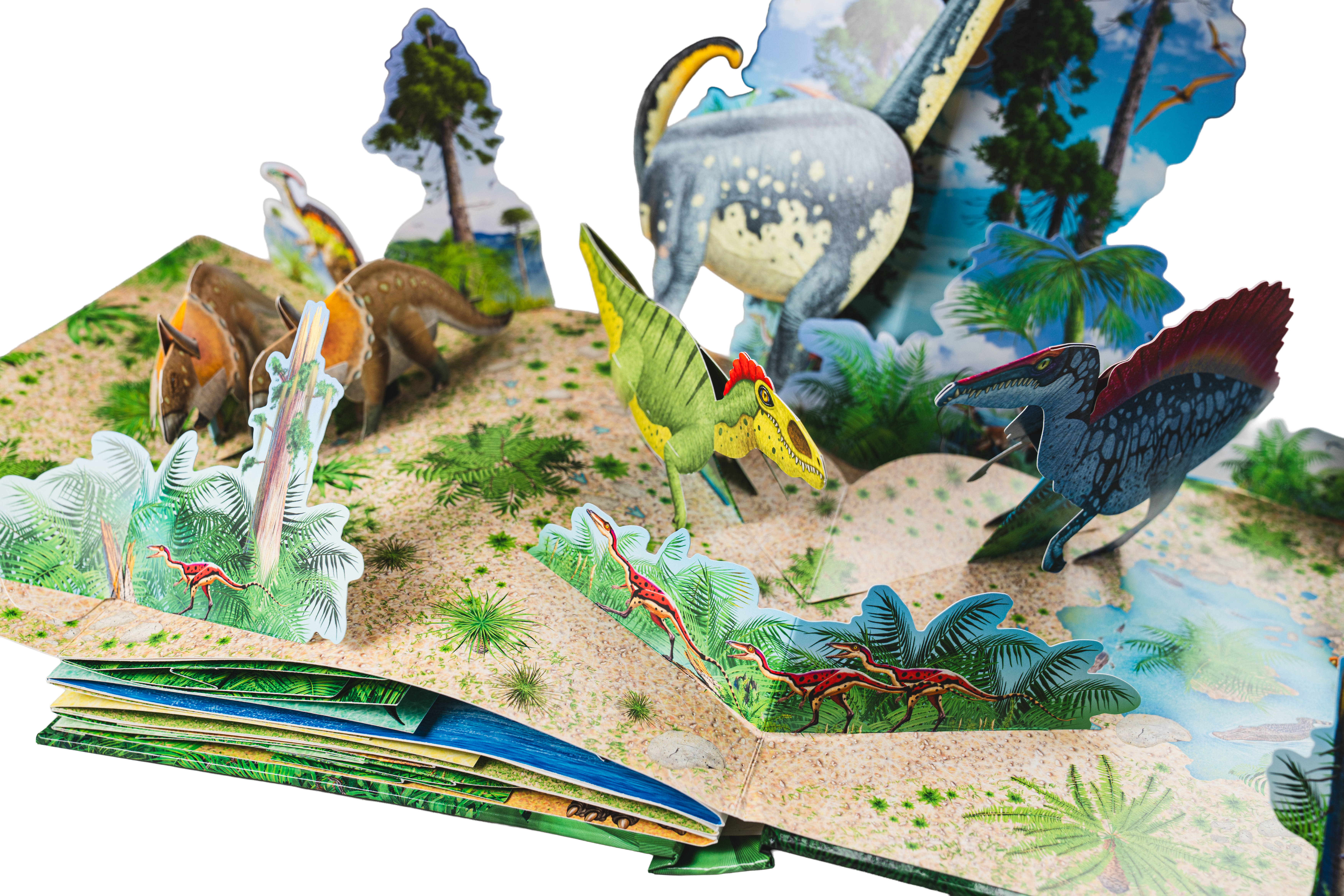 Ta trójwymiarowa książka przenosi do czasów, gdy potężne dinozaury rządziły Ziemią. Spektakularne, rozkładane zwierzęta 3D zaprojektowane przez Davida Hawcocka, mistrza inżynierii papierniczej, przedstawiają wiele gatunków, m.in. apatozaura, tyranozaura czy stegozaura. Młody czytelnik zdobędzie interesujące informacje, a potem otworzy rozkładane strony i przyjrzy się najdrobniejszym szczegółom ogromnych ilustracji. Realistyczne zwierzęta w ich naturalnych środowiskach życia, zarówno na lądzie, jak i w wodzie i w powietrzu, oraz ciekawy tekst sprawiają, że książka jest stymulującą lekturą, a także świetną okazją do zabawy. Wyjątkowa książka z dinozaurami 3D w rozmiarze XXL . Poznaj prehistoryczne gady i daj się zaskoczyć!