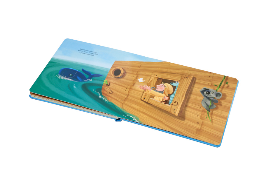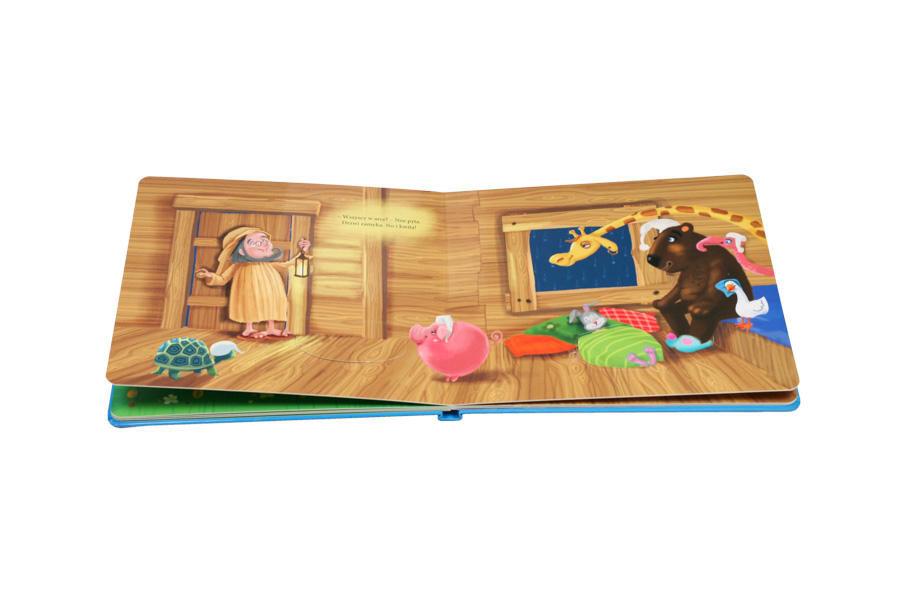 Zapraszamy na pokład arki Noego wszystkie dzieci (a także dorosłych)! Można tu zobaczyć mnóstwo zwierząt i poznać jedną z najbardziej lubianych historii biblijnych. Prosty rymowany tekst i pełne ciepła ilustracje spodobają się maluszkom, a otwierane okienka przyniosą im jeszcze więcej radości. Odkrywanie, co jest w środku, to wspaniała zabawa! Ta urocza kartonowa książka z okienkami nie ma sobie równych wśród ilustrowanych historii biblijnych dla najmłodszych dzieci.