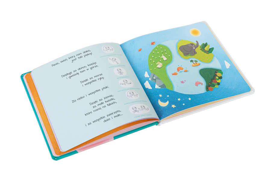 Ta książeczka to pierwszy modlitewnik malucha. 12 krótkich modlitw, które zachęcają dzieci do wielbienia Boga nie tylko słowami, ale i za pomocą gestów, czyli radosnym sercem i całym ciałem.