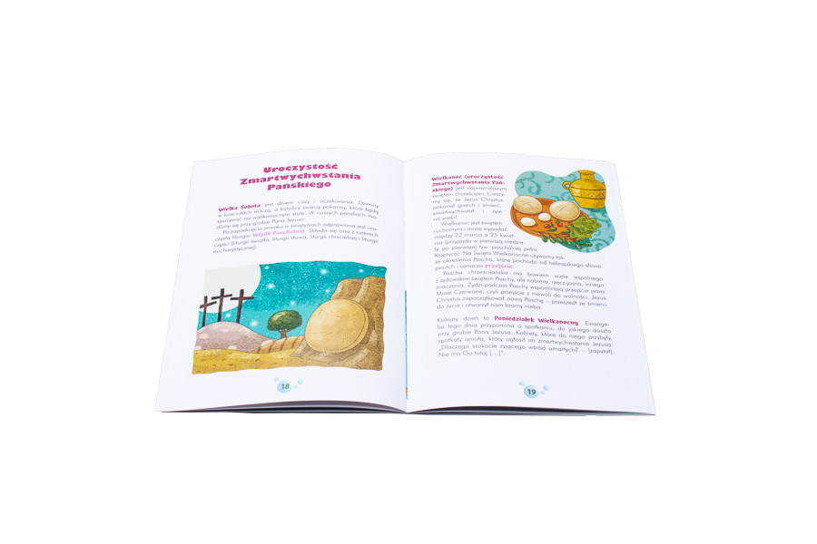 Ta urocza książeczka zaznajamia małych chrześcijan z najważniejszymi rzymskokatolickimi świętami. Uczy dzieci podstawowych terminów liturgicznych i uświadamia istotę poszczególnych uroczystości. Na jej 32 stronach znajdziemy wiele informacji dotyczących najważniejszych świąt roku liturgicznego, a także ciekawe zadania, które ułatwią dzieciom zrozumienie największych tajemnic chrześcijańskiej wiary.