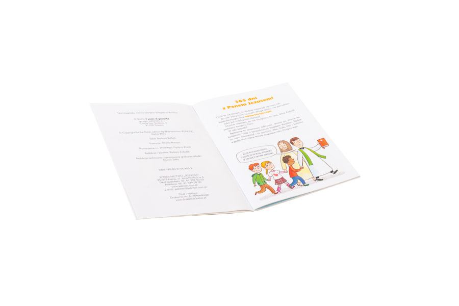 Ta urocza książeczka przeprowadza małych chrześcijan przez różne okresy roku liturgicznego. Zaznajamia dzieci z podstawowymi terminami, kolorami, literami i symbolami. Na jej 32 stronach znajdziemy schemat roku liturgicznego i propozycje wielu inspirujących aktywności, które pomogą dzieciom w twórczy sposób przeżywać uroczystości, święta i dni okresu zwykłego.