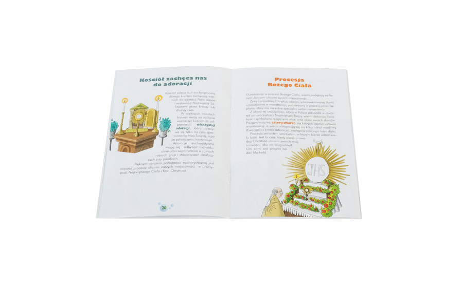 Ta książeczka wyjaśnia małym chrześcijanom, czym jest adoracja eucharystyczna. Zaznajamia dzieci z podstawowymi terminami liturgicznymi i uwrażliwia je na piękno modlitwy przed Najświętszym Sakramentem. Na jej 32 stronach znajdziemy wiele ciekawych rozważań, najważniejsze informacje dotyczące kultu eucharystycznego oraz modlitwy i medytacje do wykorzystania podczas indywidualnych i wspólnotowych adoracji.