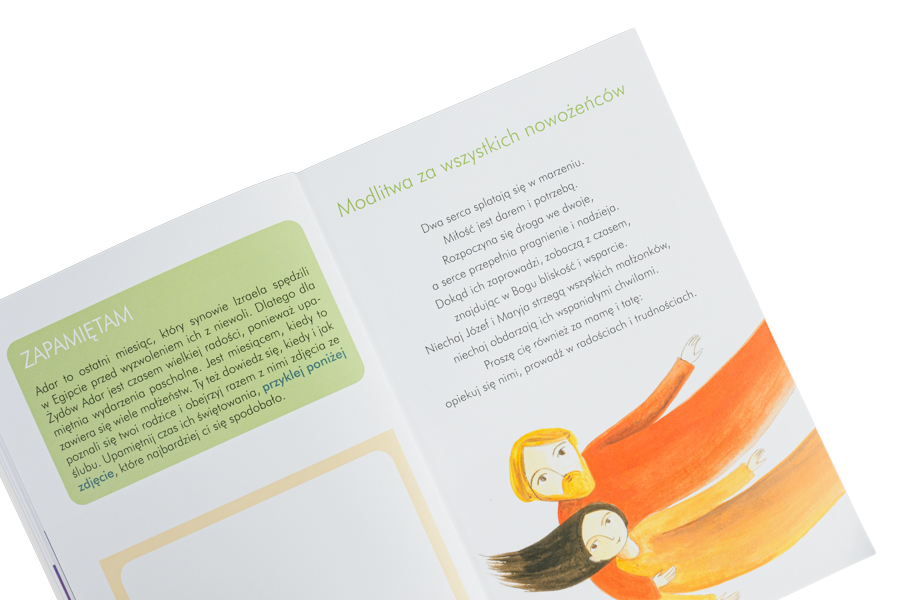 Aby wzbogacić treść publikacji, do każdego z opisanych wydarzeń dodane zostały modlitwy, zadania i teksty do przemyślenia. Książkę opatrzono też pięknymi ilustracjami.